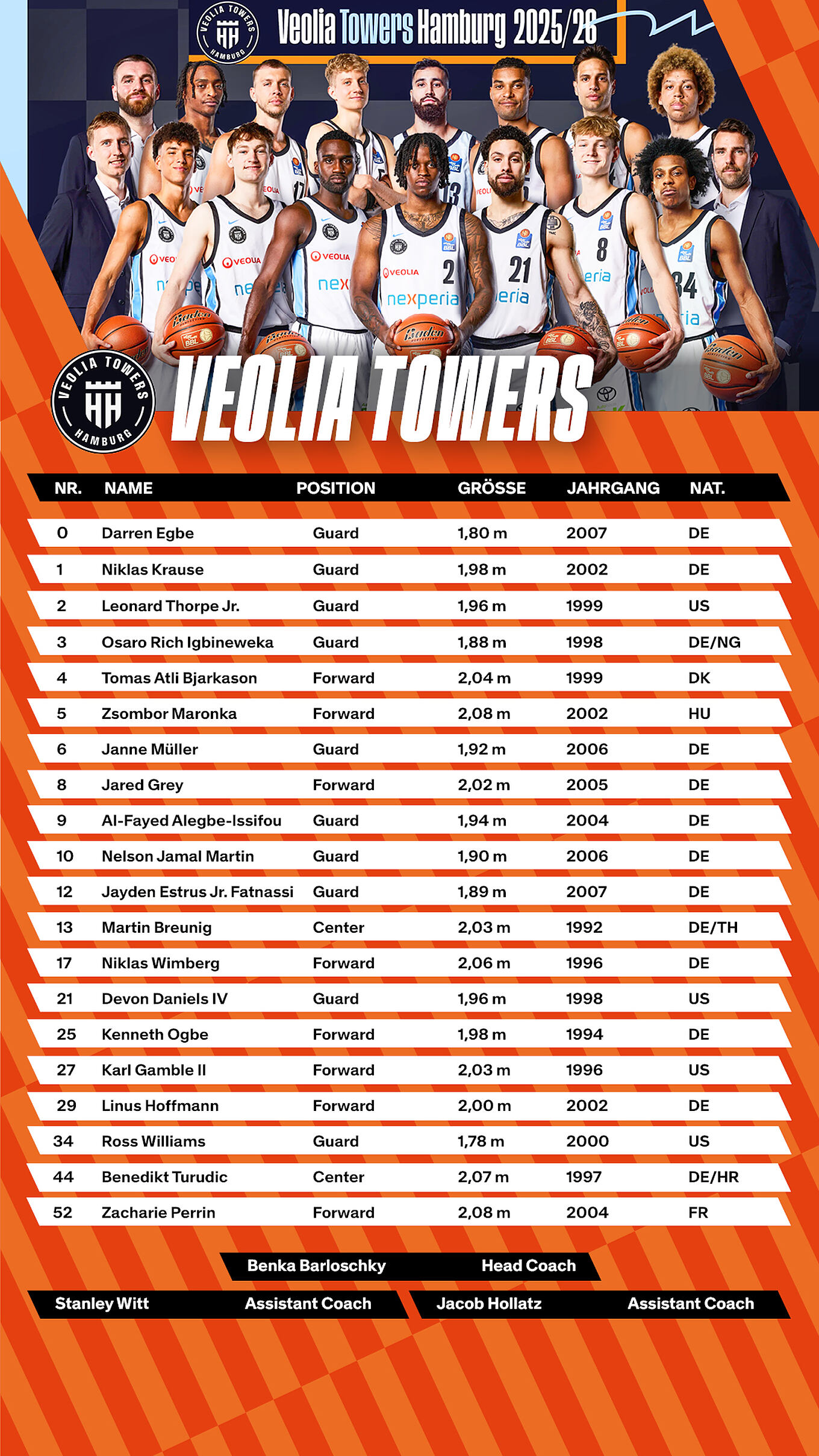 | 1 | 43 | Christian Sengfelder | PF | 2.03 m | 108 kg | 1995 | de |