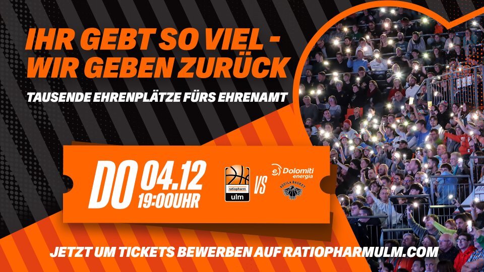 Dieses Jahr fällt der Ehrenamtsabend in die Vorweihnachtszeit – und verspricht ein besonders festliches Erlebnis. Feiert euch selbst und die Uuulmer Basketballer beim BKT EuroCup-Heimspiel gegen das italienische Topteam aus Trient.